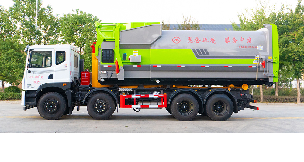 車廂可卸式垃圾車(分為勾臂式垃圾車和套臂式垃圾車兩種),該車廣泛適用于城市街道學(xué)校垃圾處理,整車性能穩(wěn)定可靠,垃圾廂鉤裝、鉤卸操作安全省力,自卸垃圾輕便快捷,整車所配廂密封性好,能避免二次污染,完全符合城市環(huán)保要求。