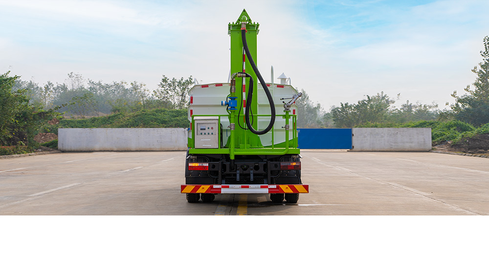 該車輛結(jié)構(gòu)緊湊、布局合理、部件做工精細、產(chǎn)品配置完善、操作性能好,采用橢圓形或者方圓形結(jié)構(gòu)水罐,駕駛室和罐體中間有量管,使水罐內(nèi)的水量一目了然。罐體尾部有操作平臺,平臺有安全防護欄保障操作人員安全,平臺上有爬梯方便操作人員上下車觀察罐內(nèi)情況。
