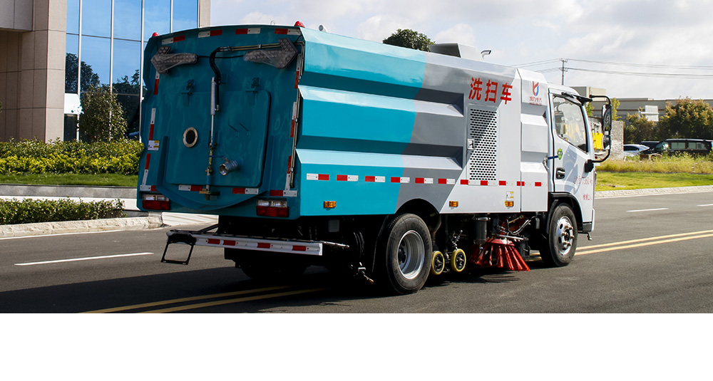 具有路面灑水、沖洗、掃路、清洗、降塵等多種功能。同時(shí)配有高壓水槍可對(duì)道路衛(wèi)生死角、牛皮癬及車(chē)輛自身進(jìn)行清潔作業(yè)采用“中置兩掃盤(pán)+中置寬吸嘴+內(nèi)置高壓主噴桿+左右高壓側(cè)噴桿”布置,小流量高壓水泵,左右噴桿V形布置和吸嘴內(nèi)置主噴桿無(wú)間隙高壓噴嘴噴水,洗凈率高、作業(yè)速度快。