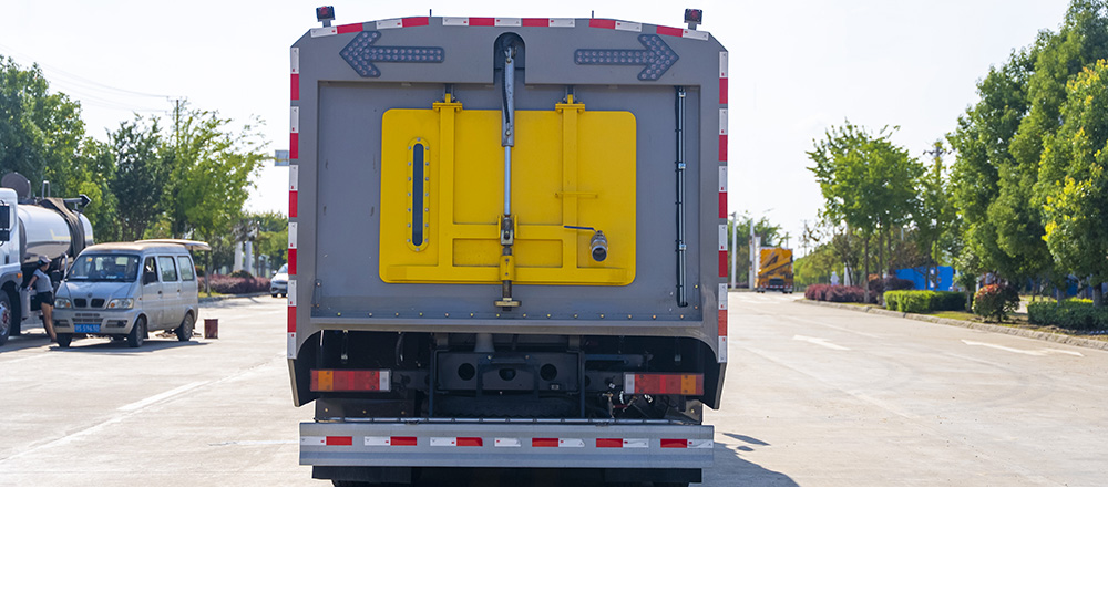 清水箱和垃圾箱分體布置,有效空間利用最大化,一次連續(xù)作業(yè)時(shí)間長(zhǎng)。同時(shí)在作業(yè)過(guò)程中可通過(guò)污水排放裝置對(duì)污水進(jìn)行排放,還可隨時(shí)增灌清水繼續(xù)作業(yè):垃圾箱采用雙油缸自卸卸料,同時(shí)箱內(nèi)設(shè)有大流量高壓噴,可快速?zèng)_洗垃圾。
