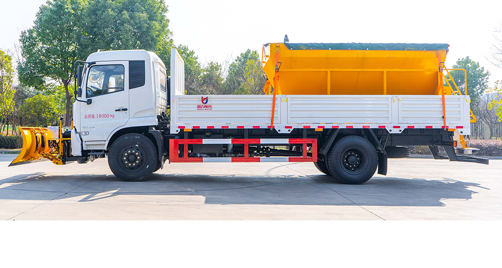 凱力風牌除雪車是凱力集團環(huán)境清洗事業(yè)部技術團隊設計、研發(fā)、制造的專業(yè)化除雪設備,適用于高等級公路、城市道路、機場、廣場、風景區(qū)等路段的除雪、融雪、掃雪等。該車是在皮卡、廂式貨車、自卸車的基礎上加裝前置除雪鏟、掃雪滾刷和融雪撒布機,機械、液壓、電氣三部分合為一體的特種除雪作業(yè)車。該車前置除雪鏟、掃雪滾劇互換使用,積雪較厚時用掃刷將其掃至馬路兩側,被車碾壓后或者有結冰的積雪用推鏟推至馬路兩側;后置融雪撒布機,車輛在冬季除雪的過程中撒布機拋酒融雪劑防止?jié)窕穆访娼Y冰影響交通,覆蓋過融雪劑的路面能很好的解決路面結冰,從而能使車輛安全的通過,不受天氣的影響。