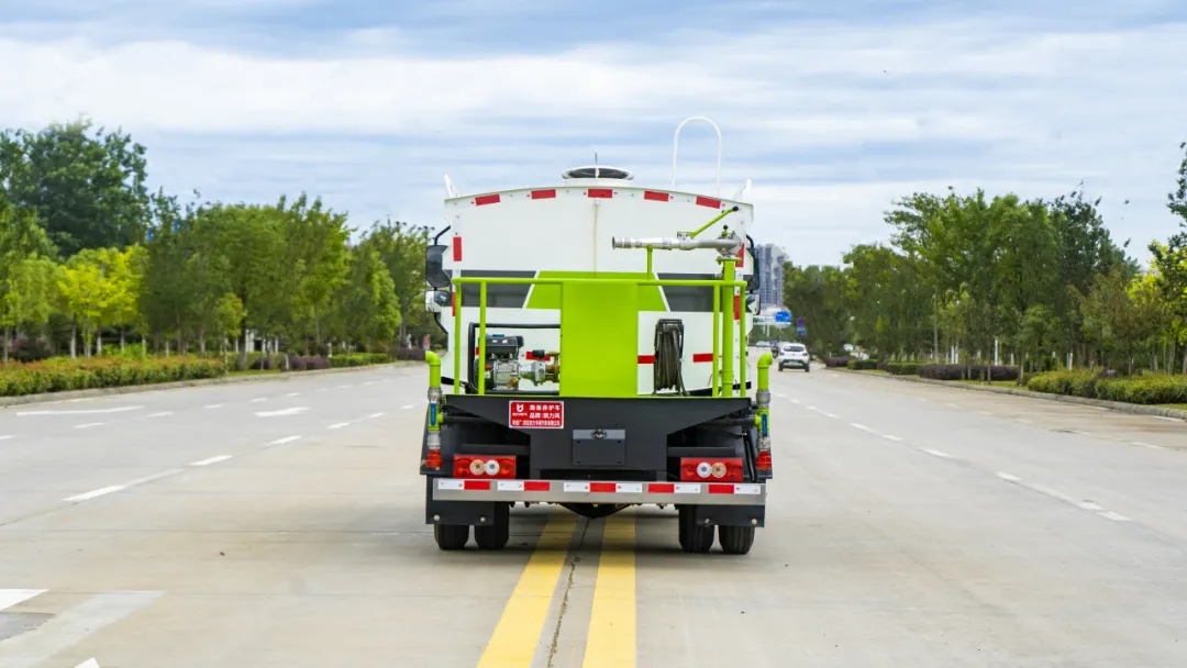 耐用:產品配置完善、操作性能好。罐體尾部有量管,使水罐內水量一 目了然。罐體尾部有操作平臺,平臺有安全防護欄保障操作人員安全,平臺上有爬梯方便操作人員上下車觀察罐內情況。