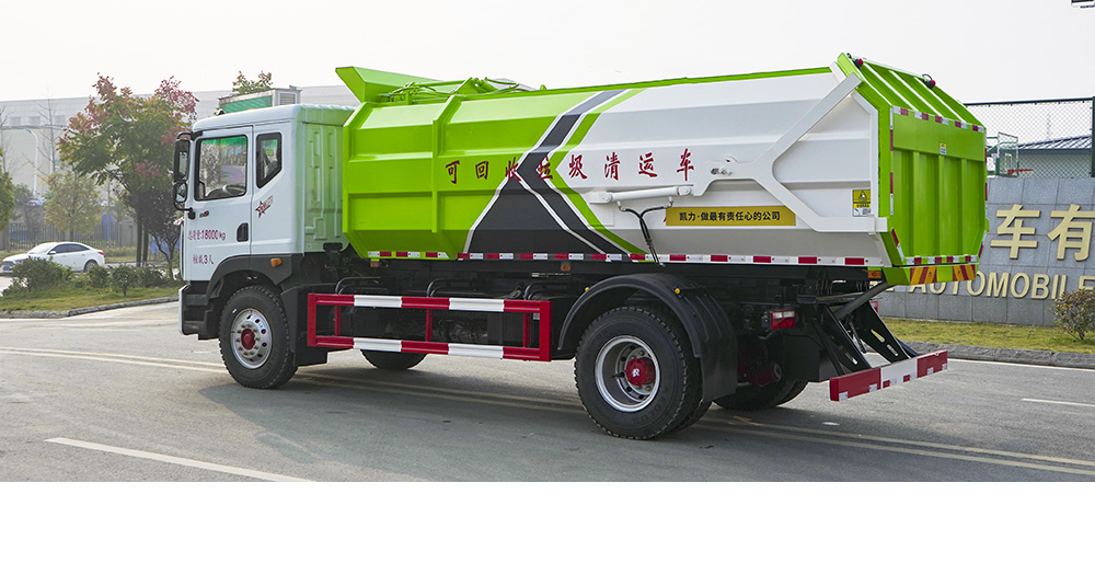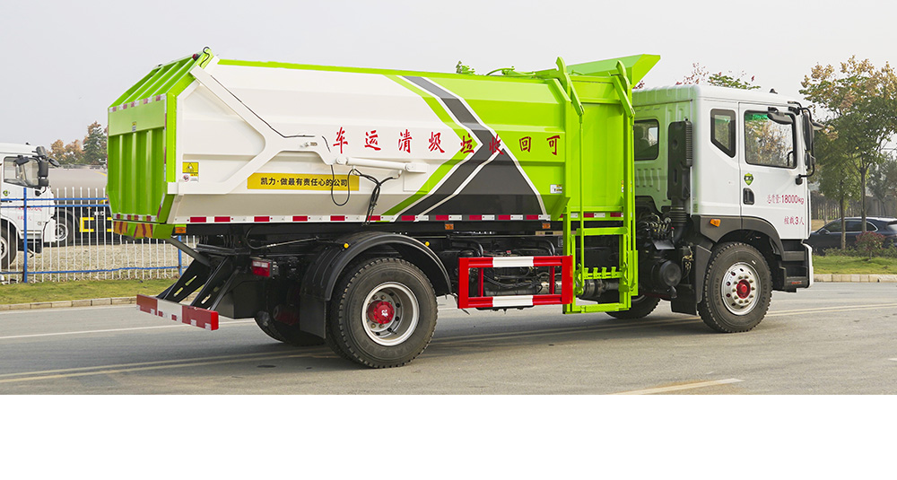 一車多配,能與多個垃圾桶聯(lián)合作業(yè),循環(huán)運輸,連桿上料機構(gòu)具有結(jié)構(gòu)簡單、性能可靠、上料循環(huán)時間短、運行效率高等優(yōu)點;垃圾箱上側(cè)設有擋板、翻桶架,投料口獨特設計,可防止上料時垃圾漏灑。