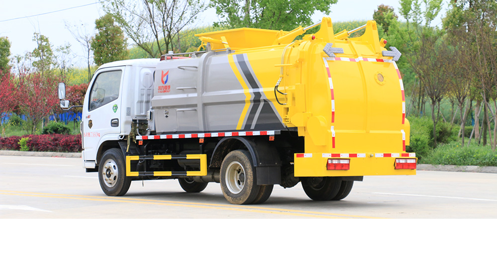 垃圾箱底部設(shè)置大量過濾孔,實現(xiàn)箱內(nèi)餐廚垃圾固液的初步分離,裝載能力強并配備有大容量污水箱;配套波壓驅(qū)動高壓清洗系統(tǒng),可對整車及工作裝置進行清洗。