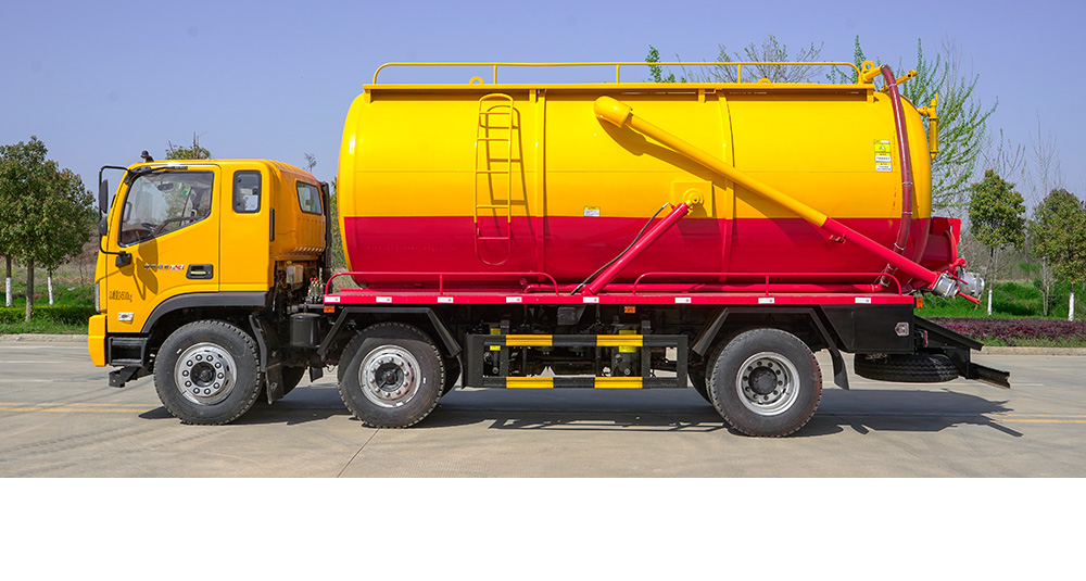 吸污車由汽車底盤、取力器、傳動軸、真空吸污泵、壓力罐體、液壓部分、管網(wǎng)系統(tǒng)、真空壓力表、視糞窗、洗手裝置等組成,隨車配置大功率真空吸污泵和優(yōu)質(zhì)液壓系統(tǒng),罐體封頭一次壓鑄成型、罐體可后開、雙頂自卸。