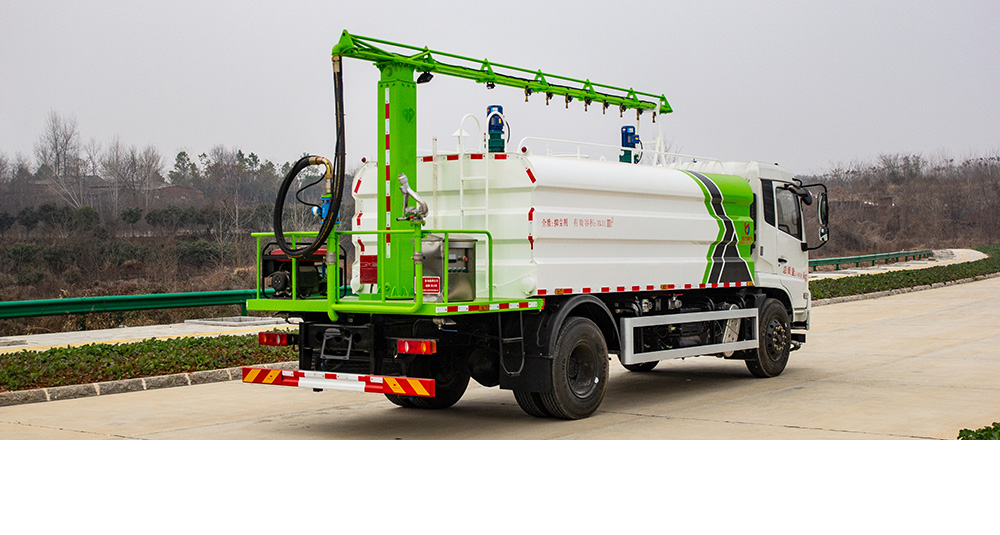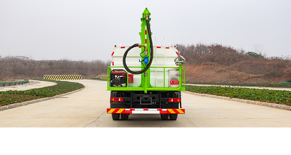 該車輛結(jié)構(gòu)緊湊、布局合理、部件做工精細(xì)、產(chǎn)品配置完善、操作性能好,采用橢圓形或者方圓形結(jié)構(gòu)水罐,駕駛室和罐體中間有量管,使水罐內(nèi)的水量一目了然。罐體尾部有操作平臺(tái),平臺(tái)有安全防護(hù)欄保障操作人員安全,平臺(tái)上有爬梯方便操作人員上下車觀察罐內(nèi)情況。
