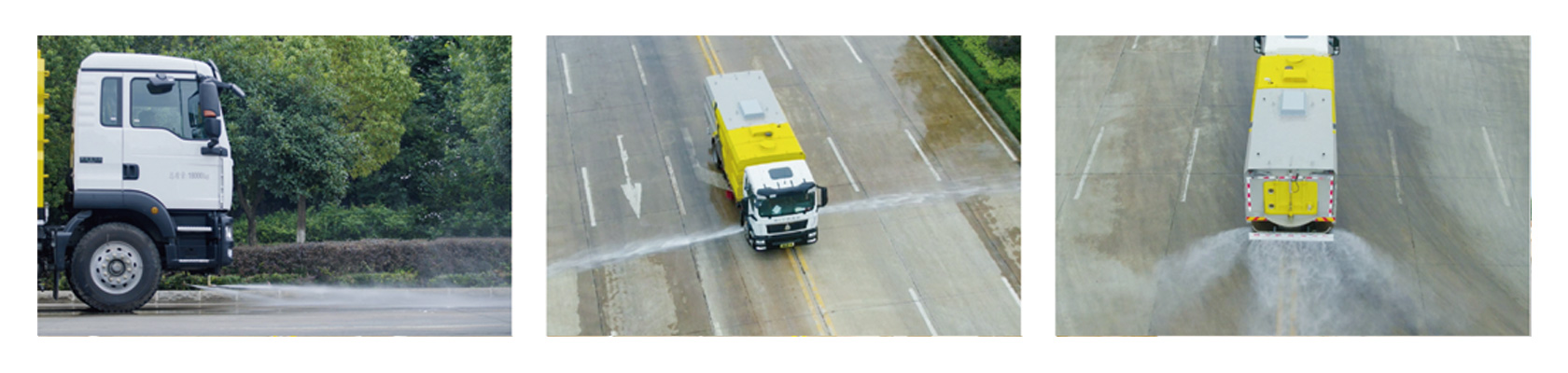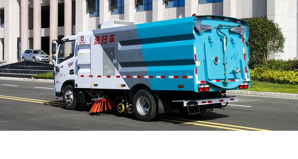 具有路面灑水、沖洗、掃路、清洗、降塵等多種功能。同時(shí)配有高壓水槍可對(duì)道路衛(wèi)生死角、牛皮癬及車(chē)輛自身進(jìn)行清潔作業(yè)采用“中置兩掃盤(pán)+中置寬吸嘴+內(nèi)置高壓主噴桿+左右高壓側(cè)噴桿”布置,小流量高壓水泵,左右噴桿V形布置和吸嘴內(nèi)置主噴桿無(wú)間隙高壓噴嘴噴水,洗凈率高、作業(yè)速度快。