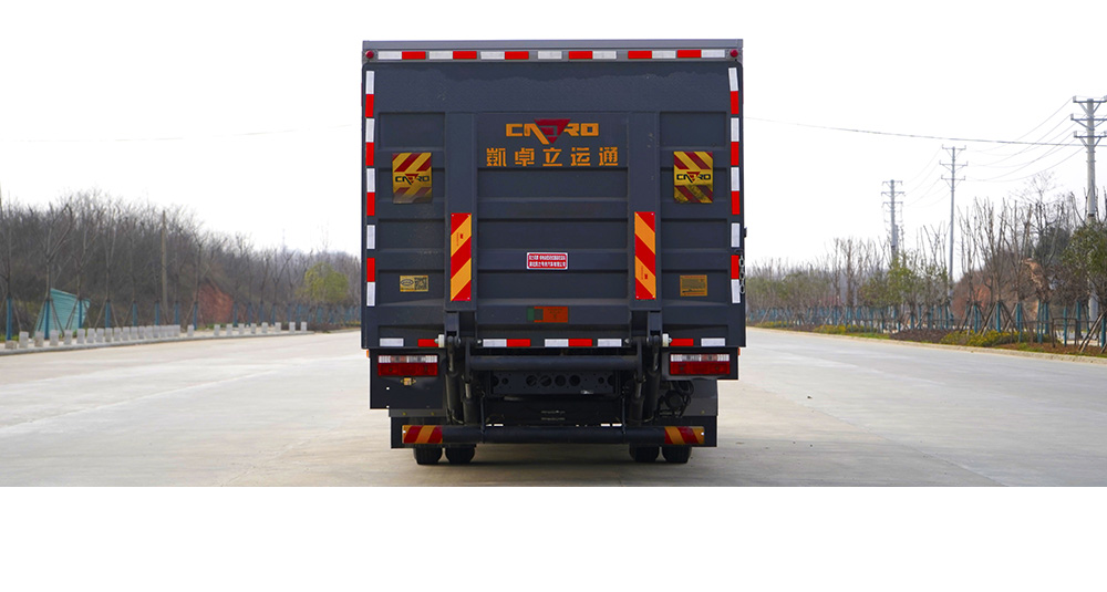 箱體尾部安裝凱卓立液壓尾板,具有升降功能,充分滿足桶裝作業(yè)要求;液壓尾板具有自動(dòng)調(diào)平功能,裝桶過程更加平穩(wěn)、安全;液壓尾板舉升時(shí)間 10-12s,相比同類產(chǎn)品的 12-14s,有效提高裝桶作業(yè)效率。